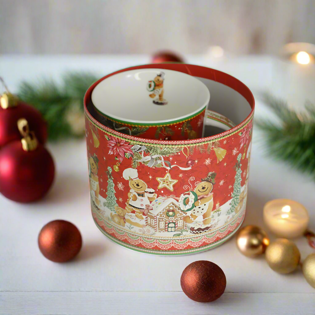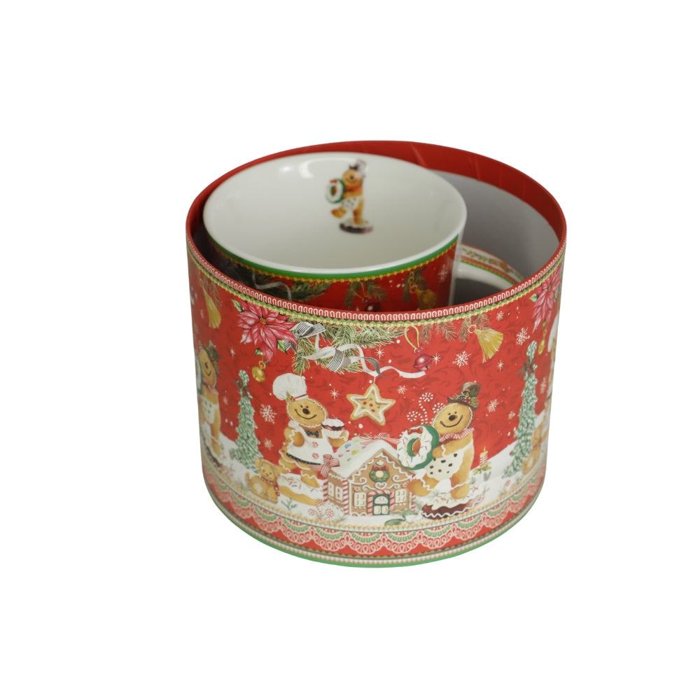 Cana Cilindrica din Portelan Craciun, in Cutie Rotunda Cadou, cu imprimeu Oameni din turta dulce este un accesoriu festiv incantator, perfect pentru a adauga o nota de magie sarbatorilor in fiecare bautura calda. Fabricata din portelan de inalta calitate, aceasta cana combina durabilitatea cu un design elegant, ideala pentru savurarea cafelei, ceaiului sau ciocolatei calde in sezonul rece.