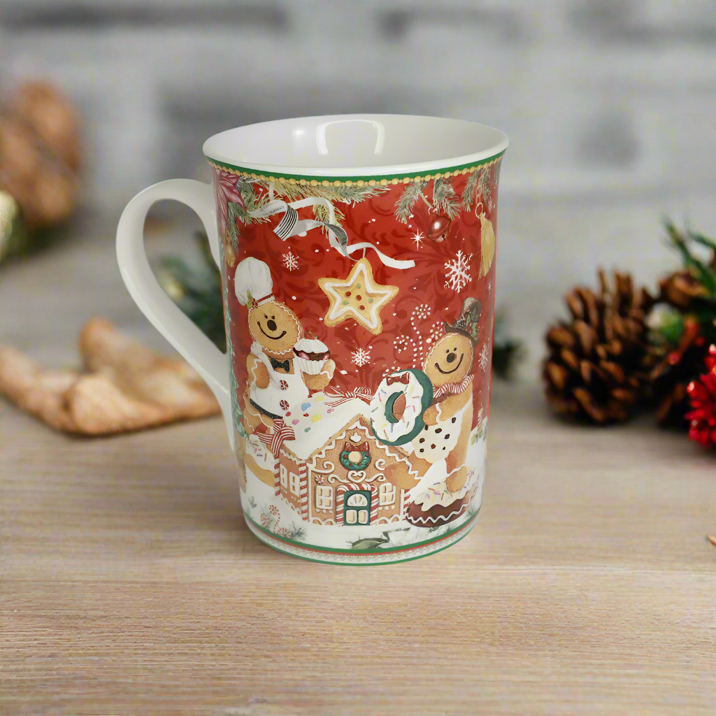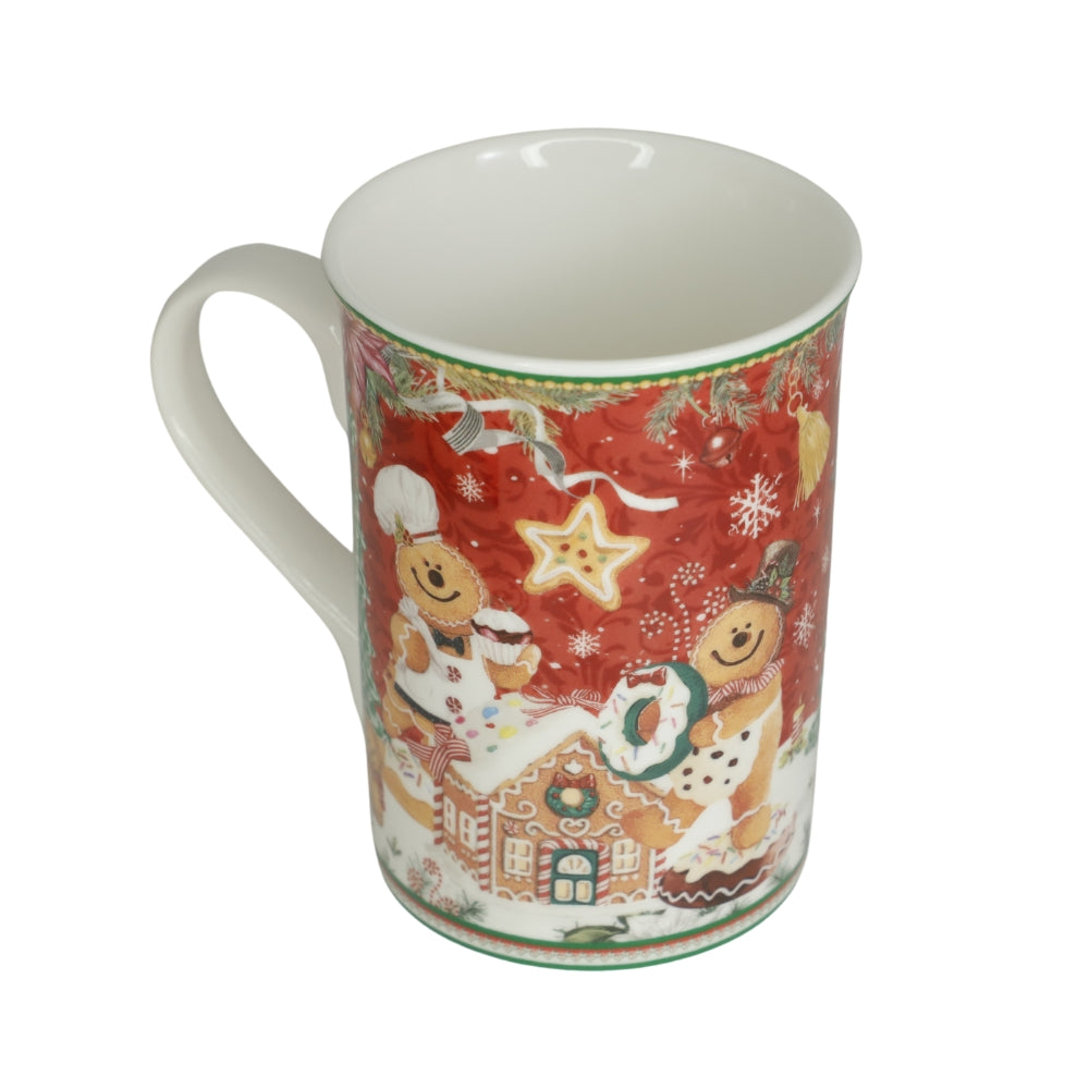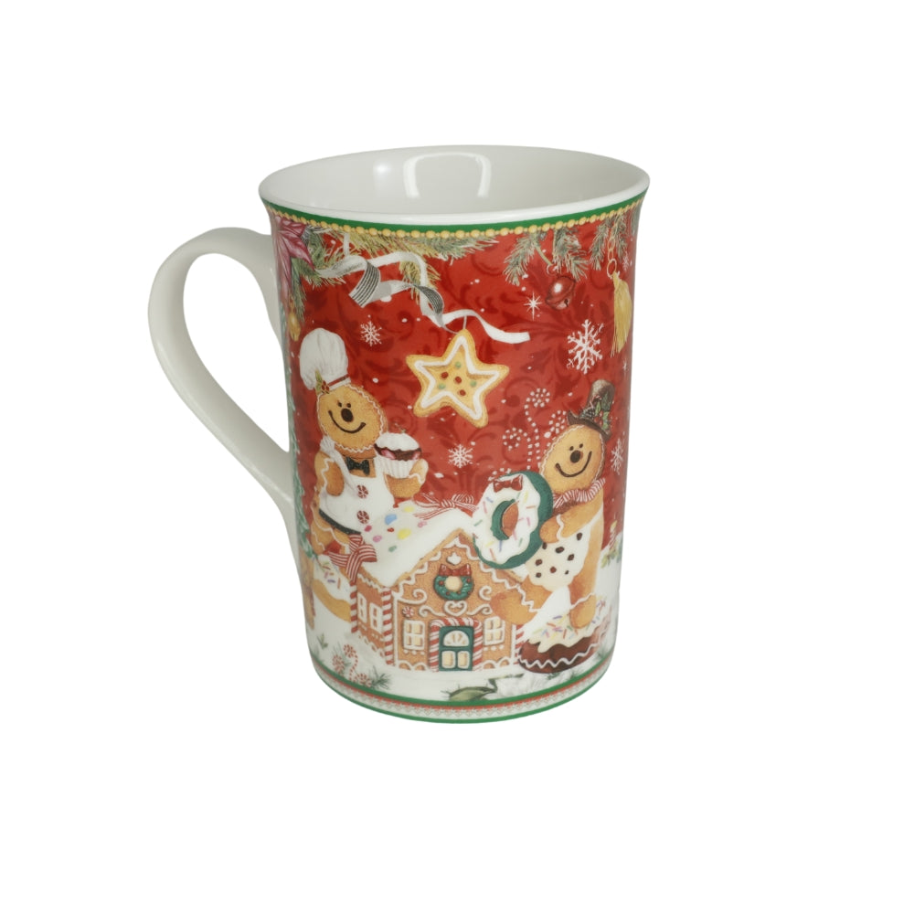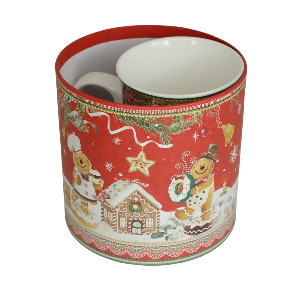 Cana din Portelan Craciun, in Cutie Rotunda Cadou, cu imprimeu Oameni din turta dulce