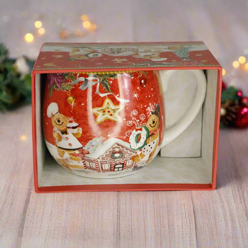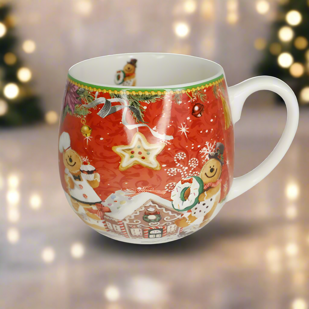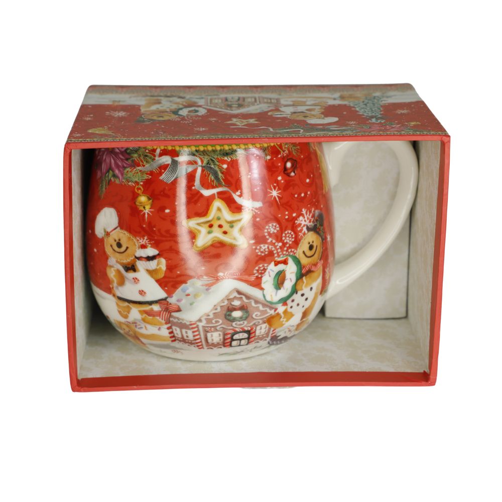 Cana Ovala din Portelan Craciun, in Cutie Cadou, cu imprimeu Oameni din turta dulce