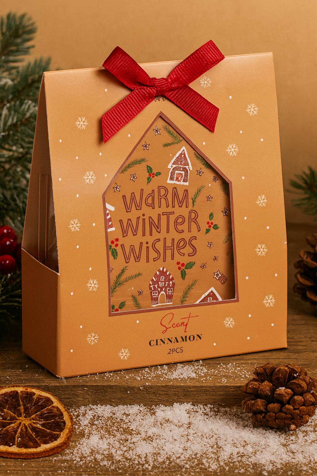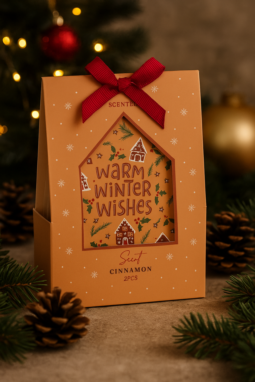 Plicul Parfumat Craciun Cinnamon aduce mirosul cald si reconfortant al scortisoarei direct in casa ta, perfect pentru sezonul sarbatorilor. Designul festiv tip casuta, accesorizat cu o funda eleganta si elemente tematice de iarna, il transforma intr-o decoratiune delicata si parfumata.