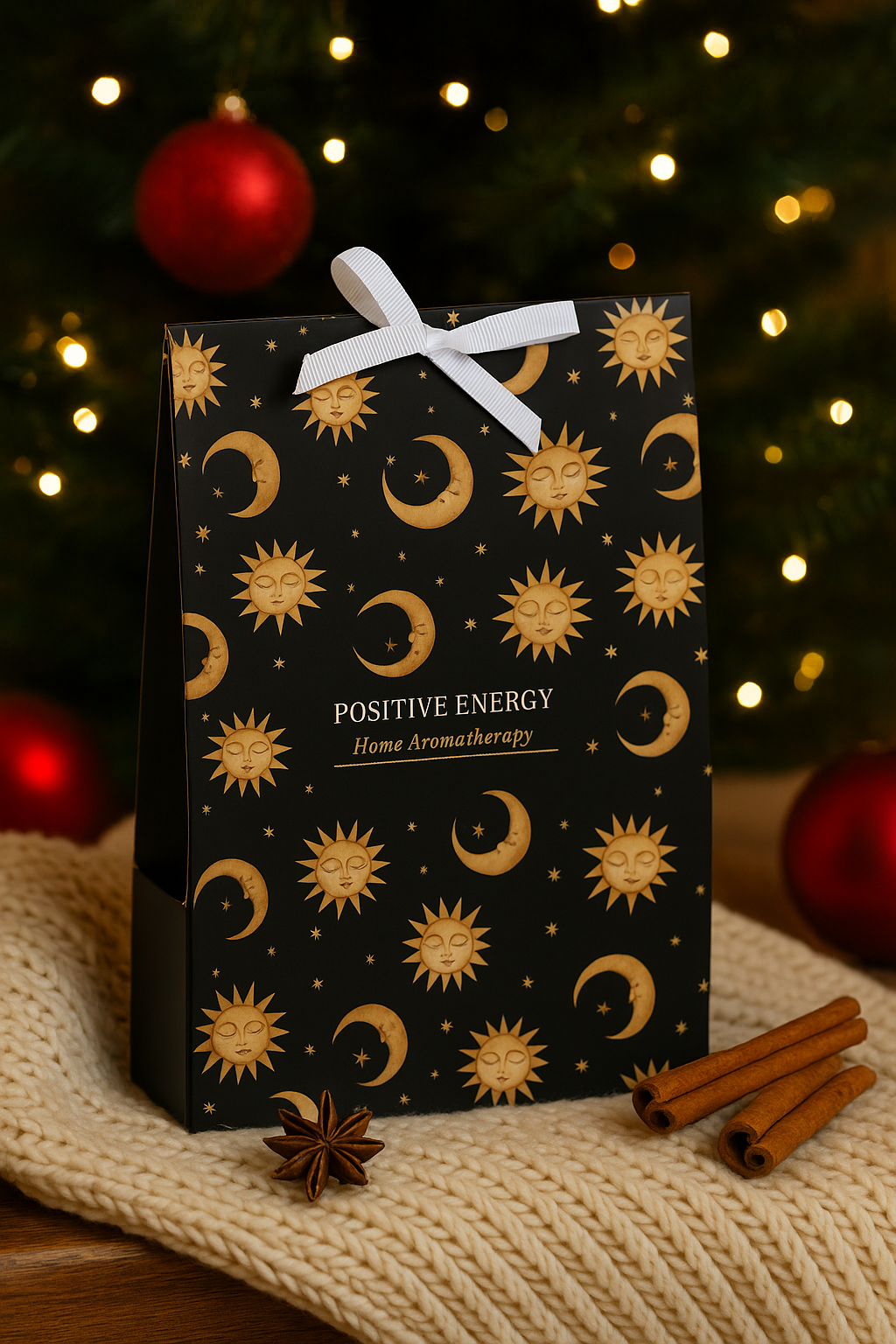 Plicul Parfumat Craciun Positive Energy aduce un plus de prospetime si atmosfera festiva in orice spatiu. Cu un design elegant decorat cu motive lunare si solare aurii, acest plic parfumat este ideal pentru a crea o ambianta calda si primitoare in sezonul sarbatorilor.