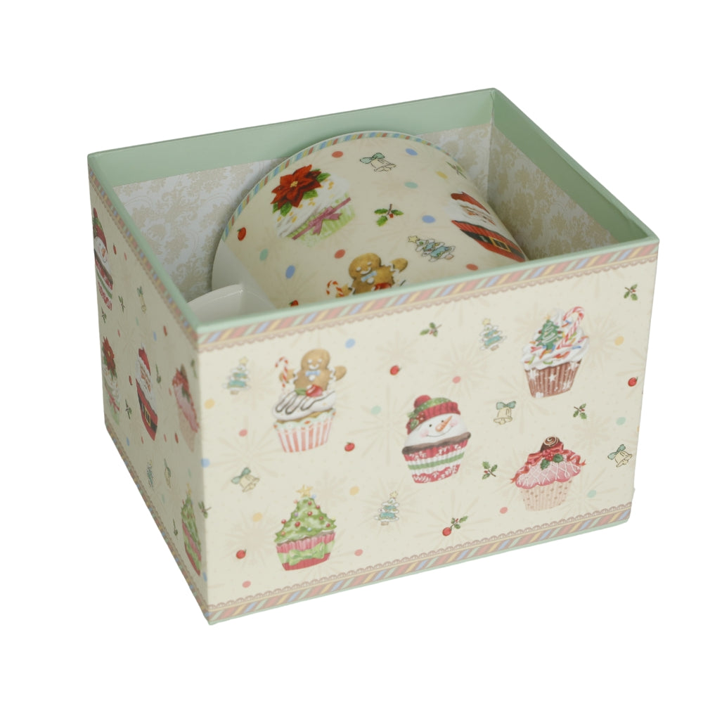 Cana din Portelan Craciun, in Cutie Cadou, cu imprimeu Briose si Decoratiuni