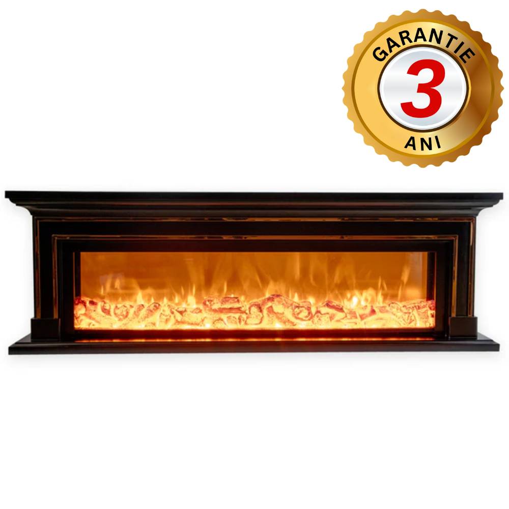 Semineu Electric din Lemn Masiv Stejar Negru cu Insertii Aurii, Telecomanda