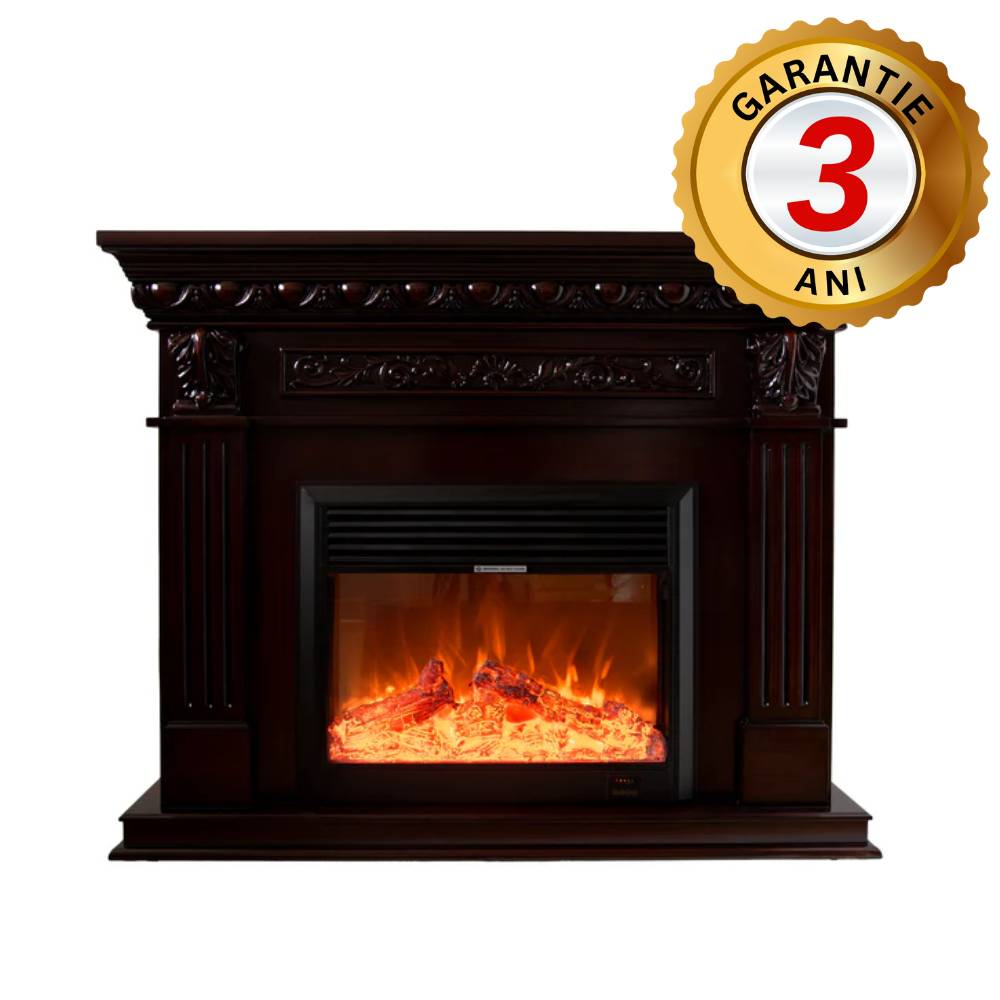 Semineu Electric din Lemn Stejar Masiv, Cu Model Vintage, Telecomanda