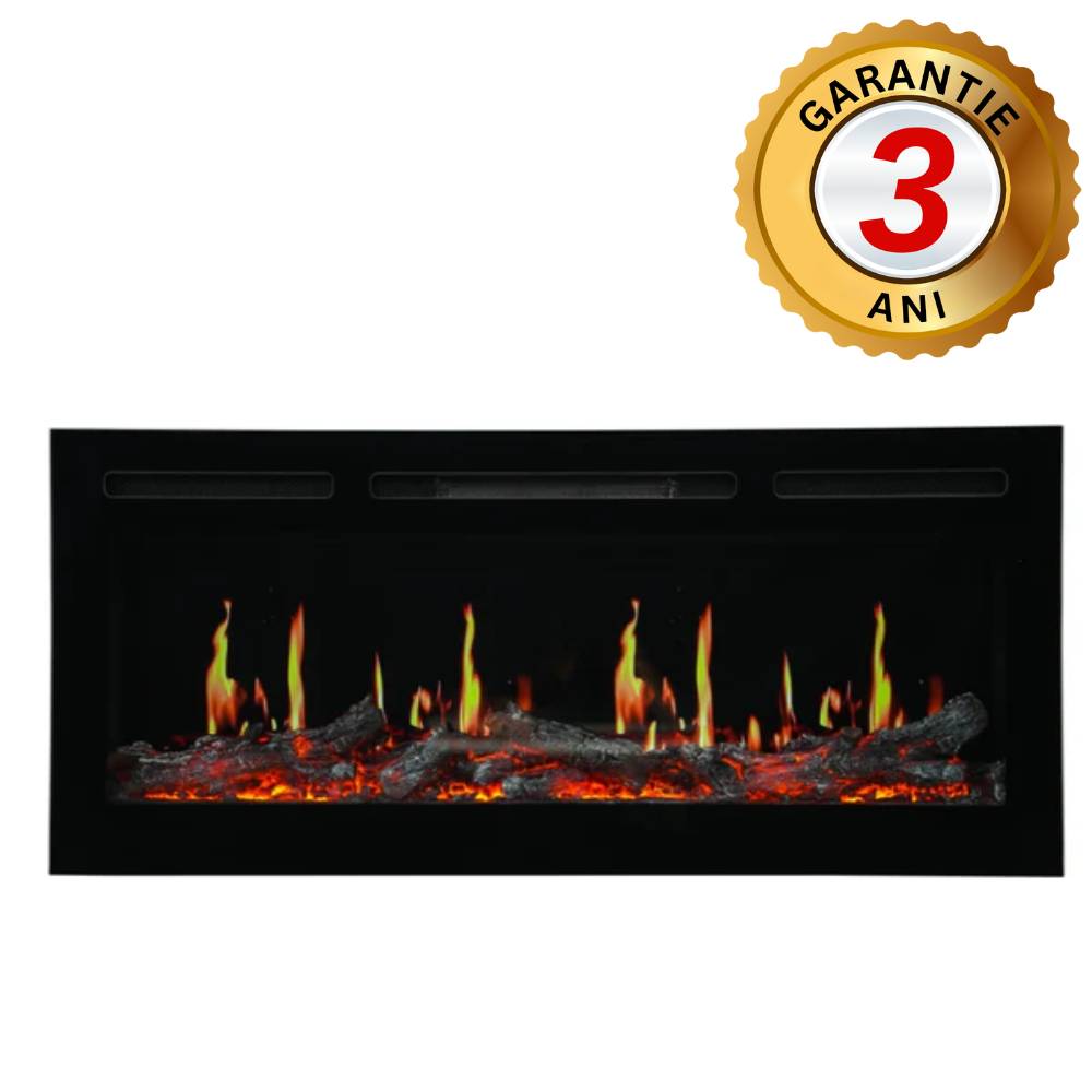 Semineu Electric Incorporabil Cu Busteni, cu Sunet, 7 culori, Flacari realistice
